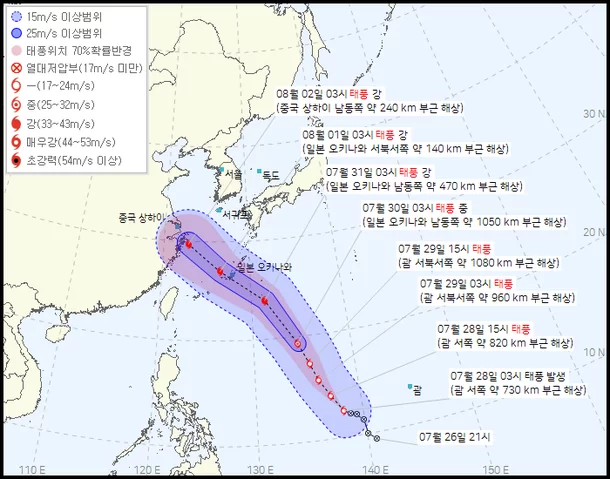 기에다 폭우를 동반하는 까닭에 한반도를 관통한다면 큰 피해가 발생할 가능성이 높다.